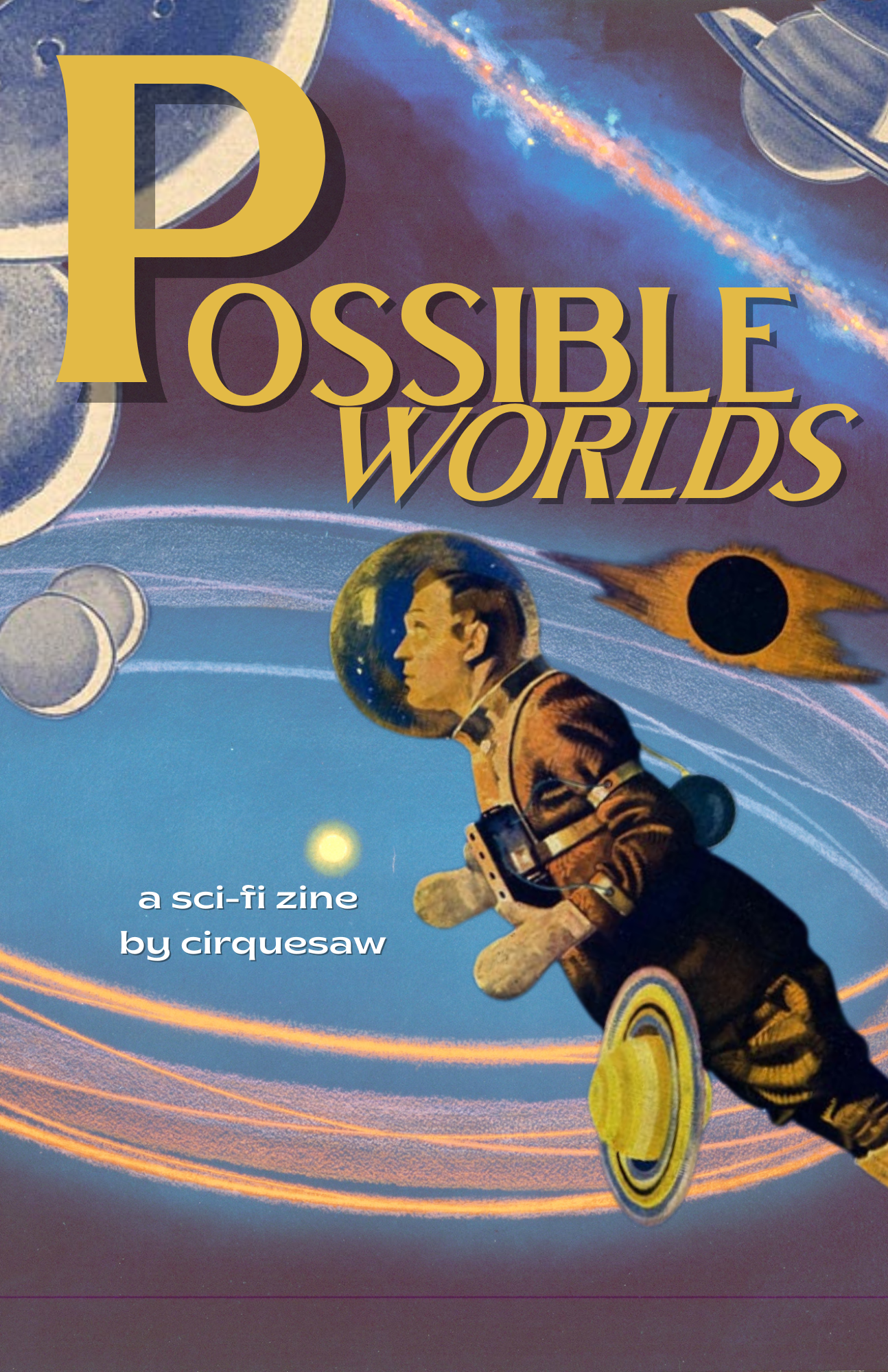 Possible Worlds is a 16 page full-color sci-fi zine featuring poetry, fiction, artwork, and even a recipe from Jeffrey Salerno , John Tibbetts, Nathan Leigh, Raina Kaufman, Ricky Young-Howze, spaceMolusk, Steven W. Allowway, and Tia Shearer Bassett. Created and curated by Nicole Orabona.